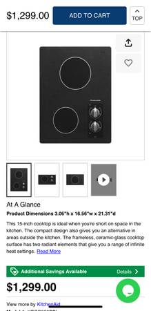 This 15-inch cooktop is ideal when you're short on space in the kitchen. The compact design also gives you an alternative in areas outside the kitchen. The frameless, ceramic-glass cooktop surface has two radiant elements that give you a range of infinite heat settings.