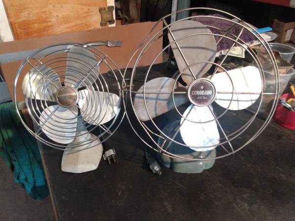 Up for sale are two (2) vintage, all-metal desktop fans, in working condition. Your choice, $30 each, cash FOB Pomeroy WA.