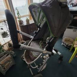 Baby Stroller, Summer by FUZE Nice stroller in good condition made with sturdy aluminum frame with large steerable front wheels and locking brakes. Folds for easy transportation, seat adjusts for sitting or laying, sun shade, rack for diaper bag, handle adjusts for comfort.