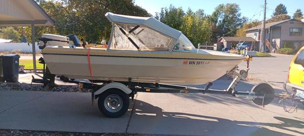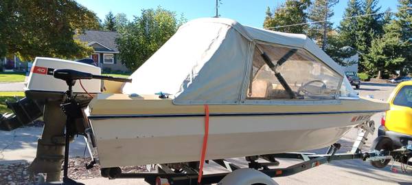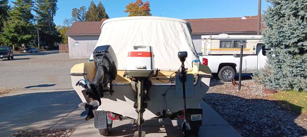 1972 14 foot Fiberform. Boat was a one owner when I bought it. Boat motor and trailer purchased all together. HAS 40 Hp Johnson 2 stroke with really low hours. Runs awesome. Had it in the water last week. Has tabs good until next June of 2026. Turn key ready. We bought the following new items in 2025: 2 gas tanks, bow and turn navigation lights, new seats, new electric horn, new 55 lb thrust trolling motor, new Garmin fishfinder, 2 new batteries ( one deep cycle), new fire extinguisher, new rod holders, new safety gear, flares ect, new rope full enclosure, anchor and rope, trailer has new wheels and tires, new 2 inch coupler, new tongue jack. This boat is ready for fall fishing. Clear title for both boat and trailer. **8 Hp kicker motor NOT included ** May trade for cargo type work van chevy or dodge full-size- NO PROJECTS. LOTS OF JUNK BOATS ON LINE THIS IS WELL MADE*** PHONE CALLS ONLY I CAN'T TEXT *** show contact info