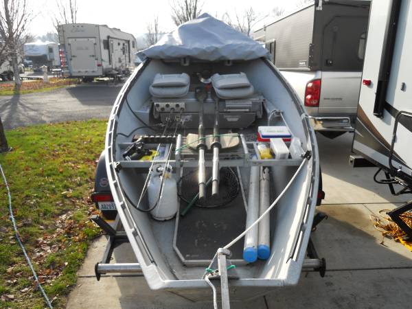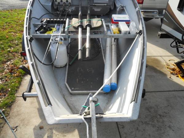 Excellent condition, straight, paint, Gluvit bottom, cover.... Trailer new wiring and lights.. Heating system, anchor system, 3 9ft. fiberglass Cataract oars. Boat is always stored indoors when not in use.