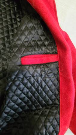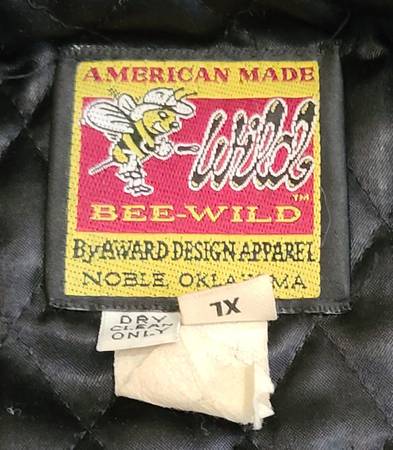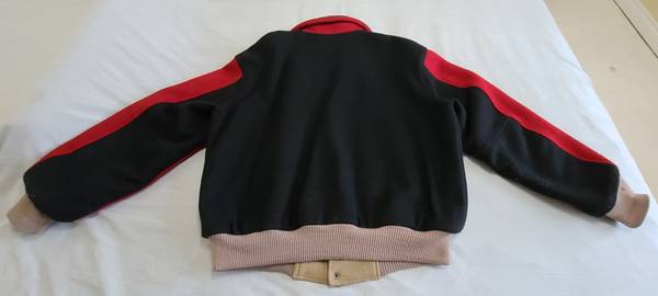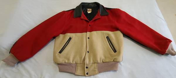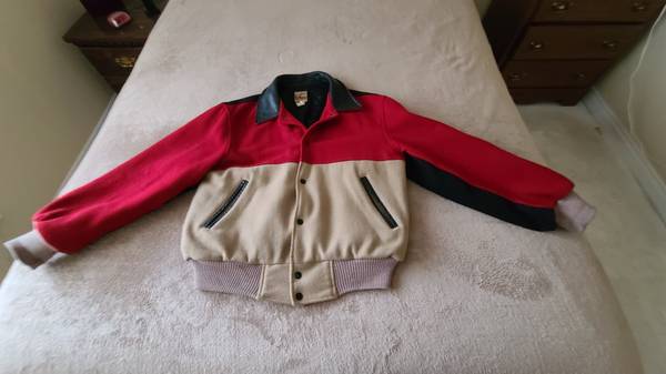 Bee-Wild Button Snap Front Jacket by Award Design Apparel in a San Francisco 49er Color Scheme. This jacket is in great shape and wasn’t worn much. The jacket has 2 pockets in the front and one inside on the left side as seen in the pics. If you’re a 49er fan this jacket could be for you. You can wear it to any occasion and proudly display the colors of your team without showing any team logos. In addition, you can feel right at home wearing it to any 49er games too, as the color scheme will blend in fine with the rest of your fellow fans. The jacket has black leather lapels which adds even more class to the jacket. The jacket is a Men’s Large and is a DRY CLEAN ONLY garment. PLEASE NOTE: This jacket was made in the USA!!!!!!!