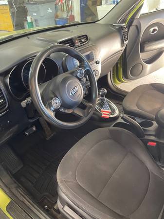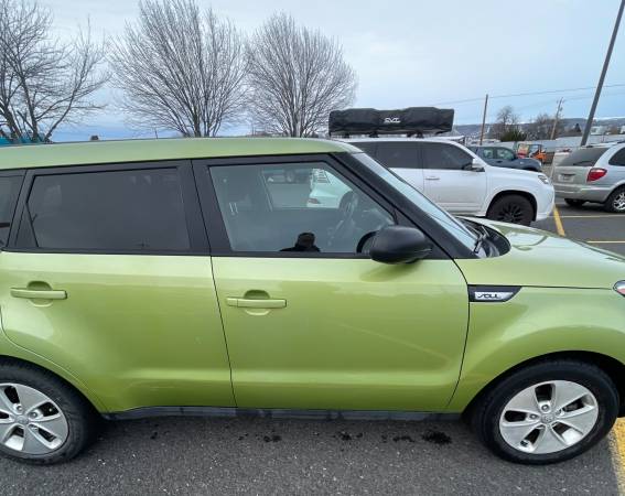 2015 Kia Soul “Alien Green”. Body and interior are in good shape with a little ripple on the hood nose. New front brake pads and new front bearing on passenger side. It gets 26 to 32 mpg and burns less than a quart between oil changes. The car pulses a bit at stop lights but I avoid this by putting it in neutral when stopped. It shifts good in either automatic or by hand. The AC blows warm. Interior is black cloth and it has a couple tiny holes from the previous owner. This car has been a good daily driver in town. Selling cash only, as is. Happy to drive it to meet you if you want to see it (within the valley). If you call with a local number and I don't pickup, leave a message and I'll call back.