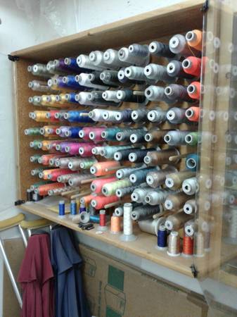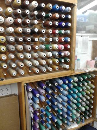 over 20,000 embroidery designs, 200 assorted large spools of thread (display cases available)