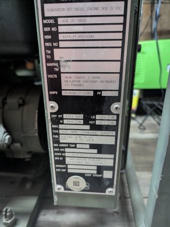 2 military DIESEL generators / both 2KW 28VDC DC / low hours / good for charging battery banks. SELLING BOTH FOR $225.00