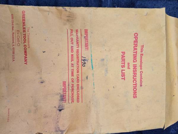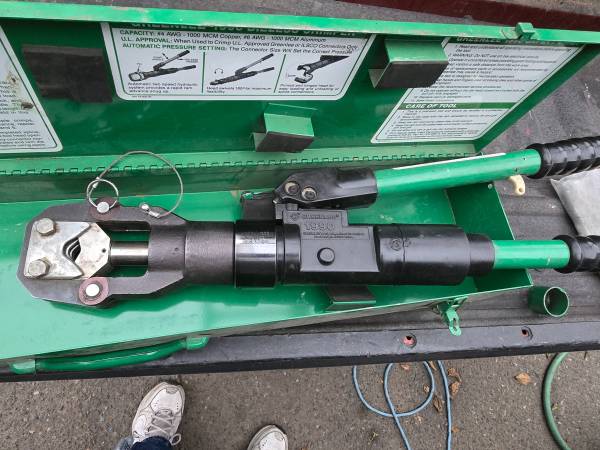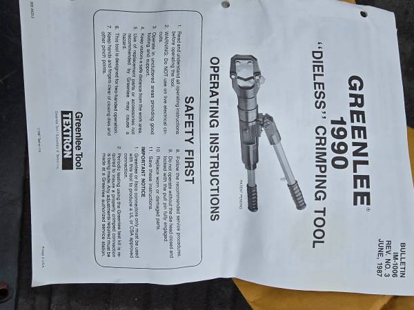 Greenlee 1990 crimper with original manual and case, works perfectly as it should. New price is $1600., selling for $750. Call with questions, 2o8-five53-257o