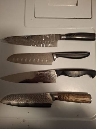 Brand spanking new in boxes Damascus steel Wide selection Come check it out.And I can make you a spectacular deal or best offer. $20 and up Discount on sets