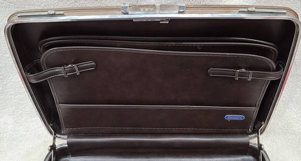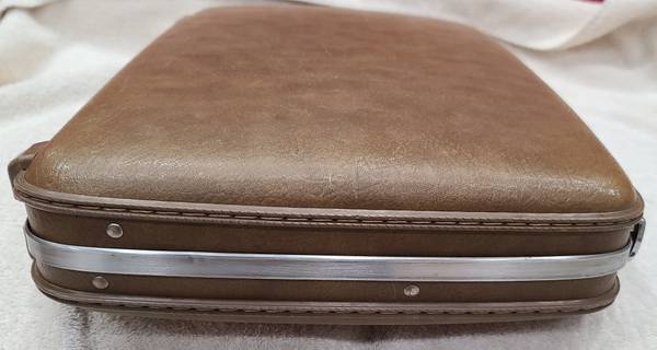 Vintage American Tourister Escort Hard Shell Briefcase. The case size is 19” x 13”. The overall size with handle extended is 19” x 15-1/2”. The color is a Brown faux pattern. The age of the case is...