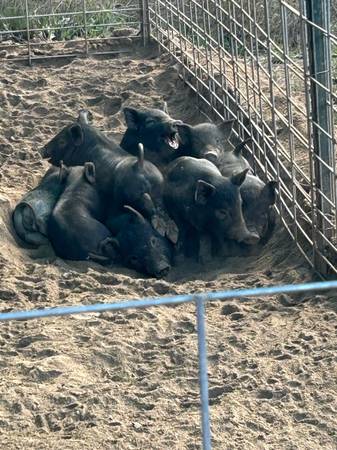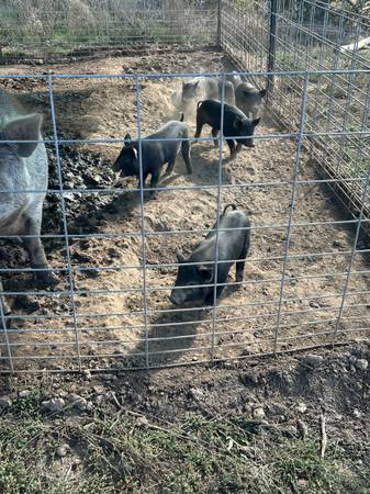 Eating non GMO feed and garden produce. Healthy and ready to go. 3/4 Mulefoot 1/4 Kune-Kune makes for darker, juicier meat. Asking $75.-possible discount when you take more. Call/text
