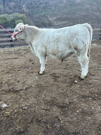Little Charolais X Bull calf up for grabs. Halter broke and handled by kids- would make a great addition to a small herd where being easy to handle is essential! We’ll be castrating and adding into our steer program if he doesn’t go. The cow picture is his Dam, and she is a neat little cow. Come take a look and make an offer if you need a decent priced bull.