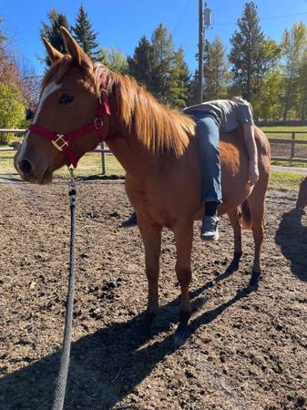 Ruby is a 2024 AQHA sorrel filly with First Down Dash, Chicks Beduino, PC Bronson and Sun Frost bloodlines. She is super friendly, comes to meet you at the gate and can be caught in an open field with ease. Ruby has had her feet trimmed, hosed off, clipped, loaded in a trailer, and we’ve started leading our kids around on her. She was born on our place and has been handled from the start.