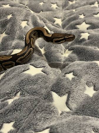 Super sweet male ball python for rehoming. He’s the sweetest snake ever, and loves all the attention. He can be a little head shy. He has no health issues that I know of. Around 4-5 years old. Great eater. Comes with tank, and everything in it. Rehoming due to no fault of his own. Rehoming fee applies.