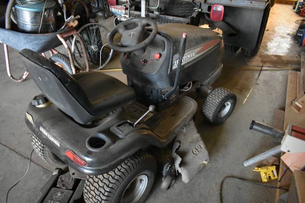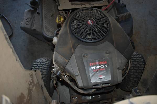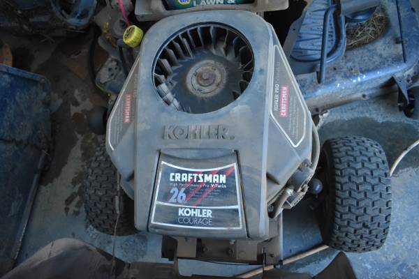 Three running Craftsman project mowers. All three run pretty strong. The little one is a single cylinder 19 hp Brigs. Needs tires and a battery. Second one is a twin brigs. Slow leak in one tire. Did mow with it las summer. Largest one is a twin kohler. mowed with it the most last summer. all transaxles seem to work fine. May need battery at some point. Batteries and tires are the needs. The engines alone should be worth the price..