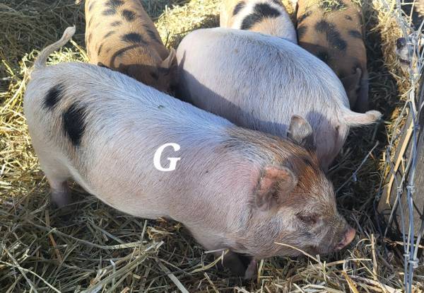 Born on September 1st: 2 intact boarlings ($50 each) and 4 gilts ($75 each). Friendly, funny pigs for pasture control (without excessive rooting), pets, augmenting or starting your own herd!