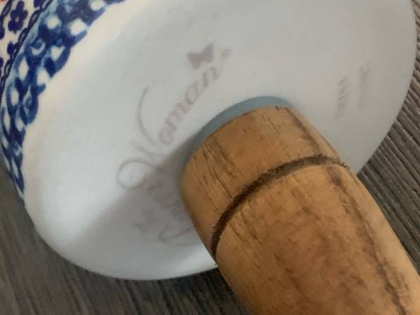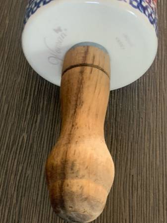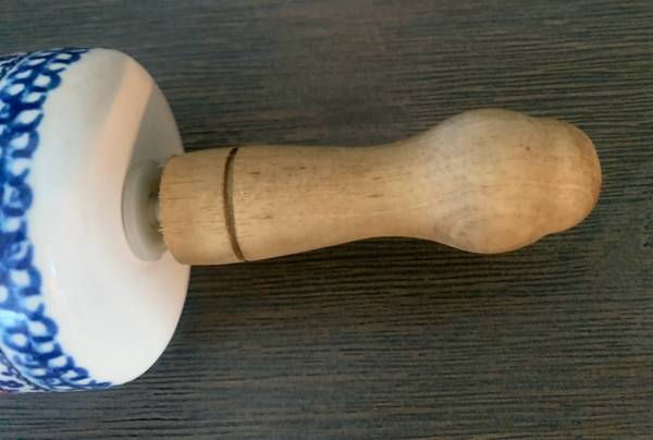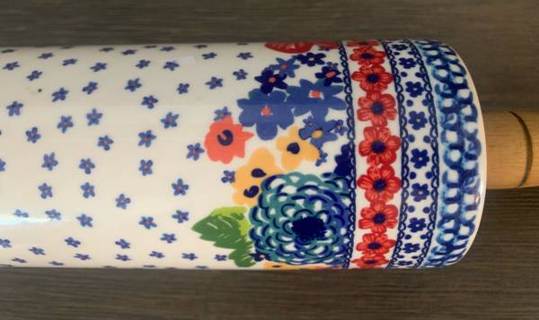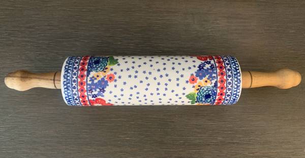 Pioneer Woman Dazzling Dahlias Retired Ceramic Rolling Pin Acacia Wood Handles. Good condition. Handles can be oiled.