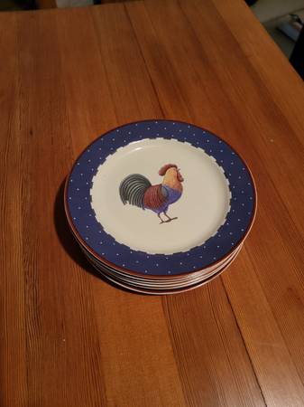 dishes, set of 6. Salad/sandwich/desert with rooster in center, 8" -- $5.00
