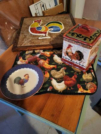 Canister set of 3 pieces. Different rooster design on each side. -- $25.00
