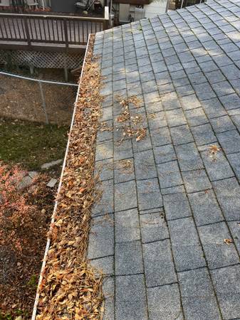 My gutter cleaning service includes blowing the leaves off your roof, scooping out your raingutters of leaves, thoroughly flushing your rain gutters and downspouts - ensuring they are flowing free and clearing any downspout that is not. I clean up thoroughly afterwards. If requested, I can take photos after I'm done of your cleaned gutters.