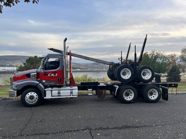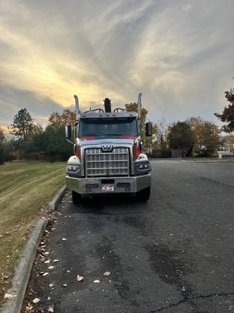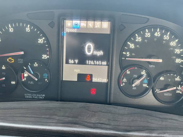 2024 Western Star 49X W/B 250" AF 120" DD16 600 HP engine with 126,125 miles, RTL018918B 18 Speed, 14,700# Detroit front axle, RT-46-160 Rear ends DBL 3.73 ratio, Hendrickson Haulmaax 46,000# rear suspension, 9.00MM steel frame, 11R24.5 front tires 50% on alum wheels, 11R24.5 Rear tires 50% on alum wheels, All disc brakes 50%