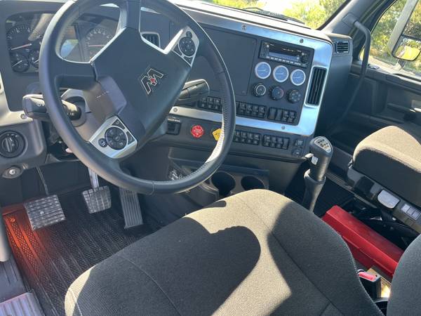 Transmission RTLO18918B 18 speed, Hendrickson steerable 13,500# pusher axle, 40,000# airliner suspension, RT-40-160 40,000# rear ends with 3.58 ratio DBL, 11.00mm Steel frame, Front Tires 11R22.5 100% on 22.5x8.25 Alum wheels, 255/70R22.5 100% on 22.5x8.25 alum wheels, 11R22.5 100% on 22.5x8.5 alum wheels. All Disc brakes. Truck comes with Detroit assurance, Active brake assist with standard adaptive cruise control and fixed headway, Detroit side guard assist with traffice sign dispaly virtual off switch, Detroit forward facing video capture and driver facing video, Detroit lane departure warning, Truck comes with warranty,