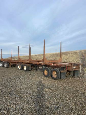 B Train log trailers, Lead 1981 Great Dane, pup 1980 Great Dane, Center Frame, good wiring and lights, tires are fair, good brakes, everything works as it should, wrappers and binders included. OBO