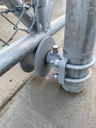 Galvanized steel Chain link Gates---- 3- 4'x6' swinging walk through gates $ 100.00 each, all in excellent condition. Lucky acres this size sell for $ 185.00. 2 - 6' tall x 28' long cantilever gates, wire on 18 feet of them made to open 18 ' made by Lucky Acres Fencing out of Lewiston, Idaho. Very heavy, will last a lifetime. If you have a 36 ft.opening that needs gated these will work and easy to open. they roll out of way along fence. I will not sell these 2 separately. $ 2000. 1 - 6' x 17'2" cantilever gate 9'6" has wire on it, made to open 9'6" could work to open 11' I think, excellent commercial heavy gate. $ 1200. Nylon rollers have sealed berrings, commercial grade, diameter of rollers are approx . 7 inch, 2 1/2" inside where gate sets. $ 80 each, rollers with covers $ 100 , I have 20 rollers some have never been used. Rollers have 4 " round post clamps on them to mount cantilever gates, all are in excellent shape. Also have buckets full of chainlink accessories, hinges, caps, tension clamps, top rail cups, top rail, 6 ft. tension bars, various diameters of tension clamps. All like new, everything is discounted at least 10 % off new prices some more. I have some 4 inch diameter galvanized posts for the cantilever gates but they need to be welded to get correct lengths. I can weld them or I will discount the price of them if you weld them.