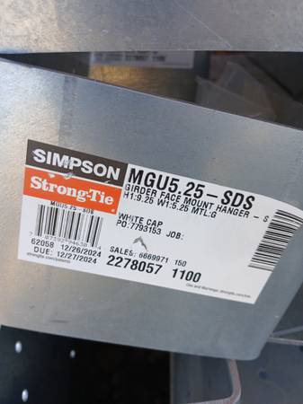 Simpson Strong Tie MGU5.25 girder face mount hangers. 16 total. Must buy all. New!! Framing, building, materials $700 for all! Thank you!