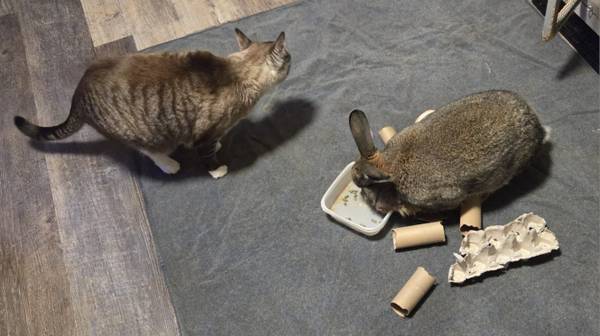 Indoor female rabbit used to being out of her hutch at least 4 hrs a day.