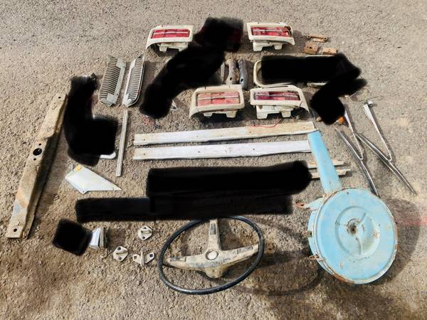 I think this is all correct for 1970-1974 Toyota Corolla 2 door sedan. Some parts might fit other models. Rear side glass is in good condition. Condition on other parts varies from good to wall hangers, taillight have crack on them. Everything for $80