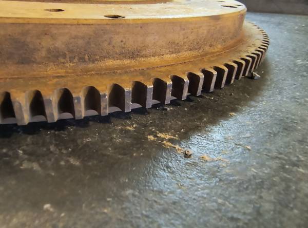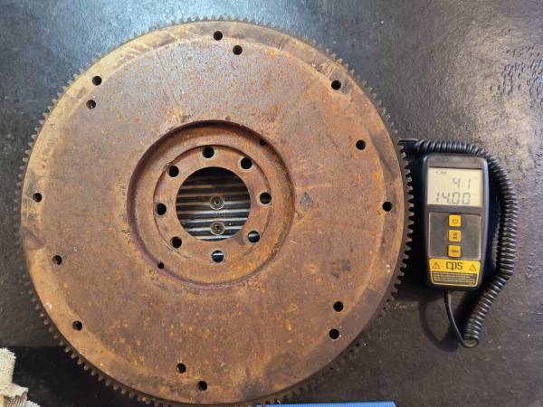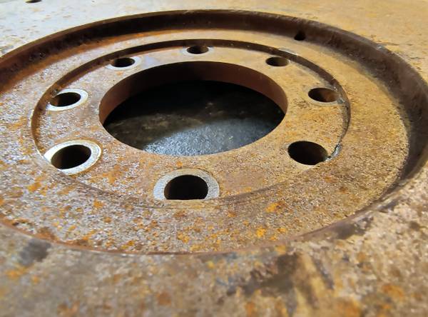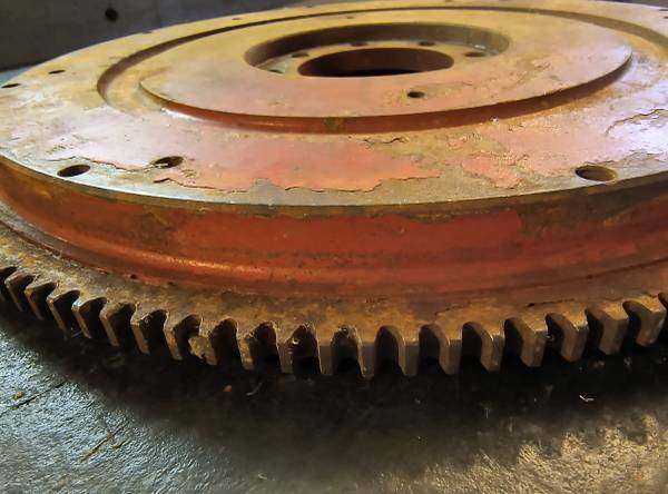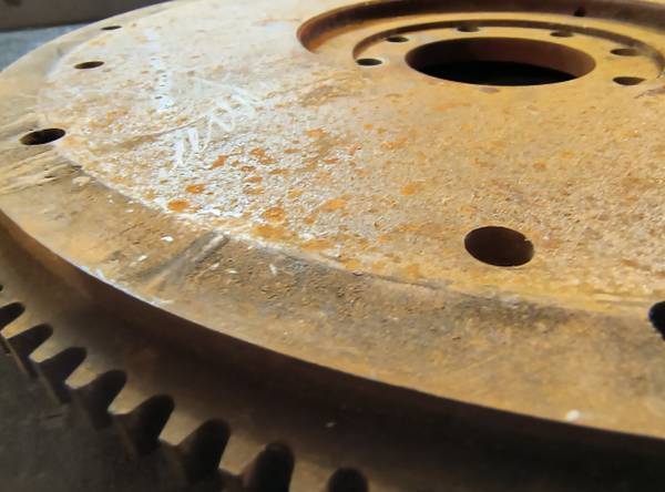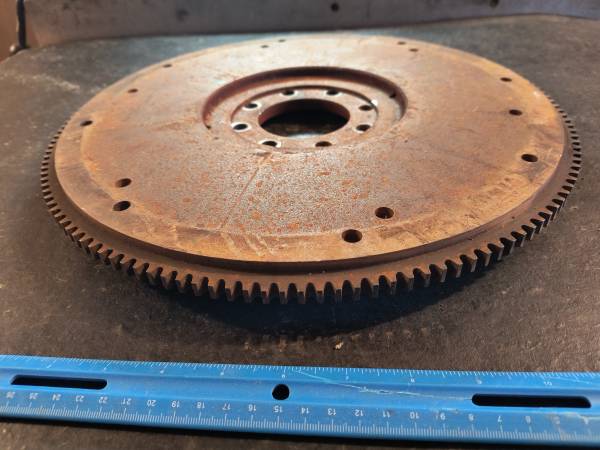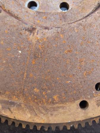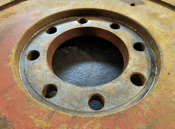 Machined surface shows some flash rust, and no grooving; formerly an industrial stationary engine, no friction disc has ever touched its surface (this one had a bolt on PTO splined adapter disc bolted to the flywheel). Have your favorite machine shop cut a fresh face, and you'll have a long lived flywheel!