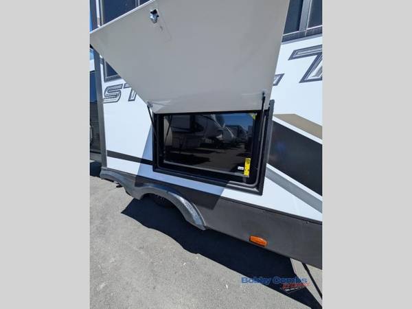 With any Stealth toy hauler by Forest River you will enjoy innovative floorplans and "off-road approved" chassis to take your adventures up a notch! There are four different build levels to choose from to best fit your needs, budget, and style. Each travel trailer and fifth wheel include flipped axles with no interior drive on wheel wells, Flip Tread solid entry steps, and tie-downs mounted to steel throughout to keep toys secure on the way to the campground. The power tongue jack will make it easier than ever to hitch up and go, and the Lippert ladder prep means you can add this option to easily access the roof. A 40 gallon fuel station comes standard to keep your toys ready to go when you are, and the dual 20 lbs. propane tanks will let you hook up the grill to make dinner for your whole crew. Some of the other convenient features include a matching spare tire if an unfortunate flat happens, a 335W solar panel, and a 1.5 cu. ft. convection microwave. And don't forget about the available options that will allow you to customize your toy hauler exactly how you want it!