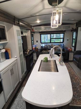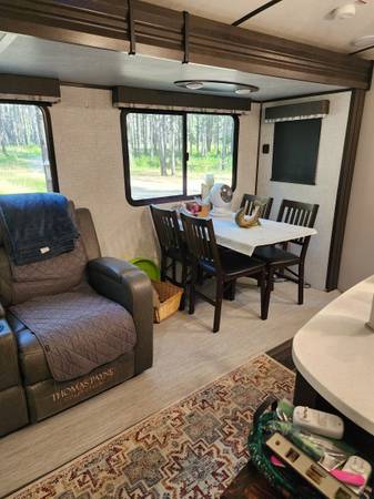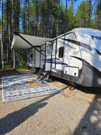 2021 Keystone Bullet Premier Ultra Lite is a top-of-the-line travel trailer for those who want to experience the open road in style and comfort. The Keystone brand is known for quality construction and attention to detail. The spacious interior is perfect for families or couples. It has a well appointed kitchen and bathroom and a self contained sleeping quarters. It consists of two slide outs that extend the living space. Trailer comes with a tow package, upgraded larger size propane tanks, upgraded mattress and full RV cover for storage when not in use.