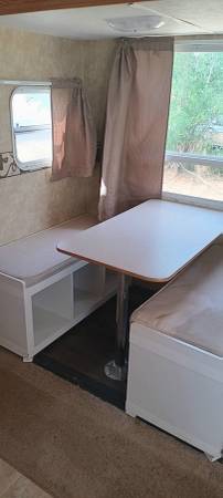 The couch, dining table, & dining benches are aftermarket upgrades. Lots of storage space inside and underneath. Large septic, and freshwater storage tanks. Good tires, LiFePo4 battery, 2 large propane tanks, weatherproof, no leaks. 2 5/16 hitch.
