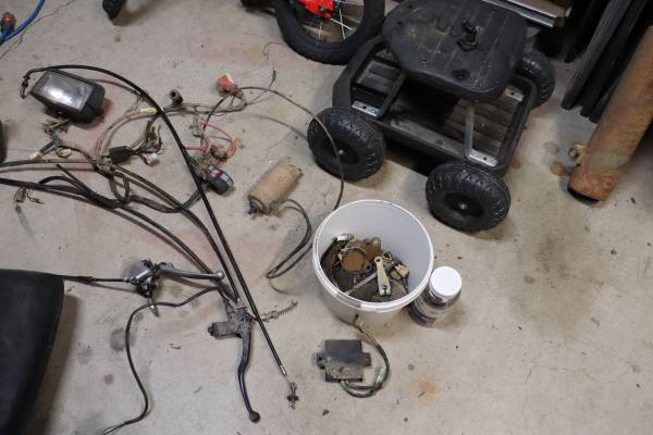 All the plastic, wiring, Carb, and seat. The motor and frame are not included.