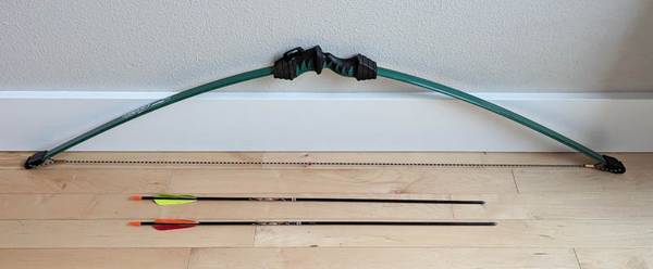 The Goblin Youth Bow is ready to go with two Easton brand arrows. These are name brand arrows for this bow. The Goblin is a 44-inch long ambidextrous (great for left/right handed) bow that features durable composite limbs and a continuous draw weight of 15-18 lb. and a continuous draw length of 22- to 24-inches. It's never too early to share Bear with the next generation of archers.