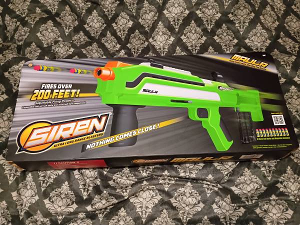 Brand new never opened Nerf assault rifle dart gun shoots 200 feet hours of fun for the kids super safe no broken windows or getting hurt if someone accidentally shoots someone soft style darts make your kids Christmas with this amazing fun dart rifle these retail at the big box stores up to 50 dollars
