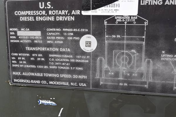 Excellent condition with only 94 hours on it. Picked it up in Boise, Idaho from the Air National Guard. Brought it back only to find the air tank had been removed. It appears complete except for the air tank. Have picked up an air tank close to the original dimensions which will be included. Additional images on request. $600 FOB: Grangeville, Idaho.