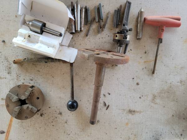 Old Craftsman metal lathe needs some TLC to clean it up but is in good condition. Cast iron lathe has some tooling, gears for different thread cutting see photos for what's included