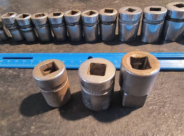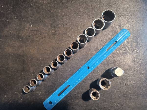 For your Craigslist consideration today here's a lot of fifteen (15) vintage Indestro Super sockets for $30 cash FOB Pomeroy WA. 1/2" drive. Various sizes, 7/16 up to 1-1/8, all SAE. Plus a couple...
