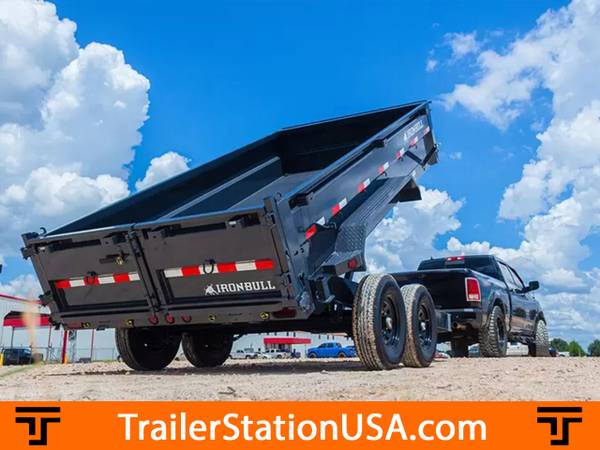 Other Iron Bull Dump Trailers: 5x10, 6x10, 6x12, 7x14, 7x16 with varied load ratings and side heights. A unique model is the Deckover Dump with fold down sides. Spare tire sold separately. All models are well equipped. High Sides Trailers - Goose Necks and more available as well!
