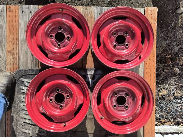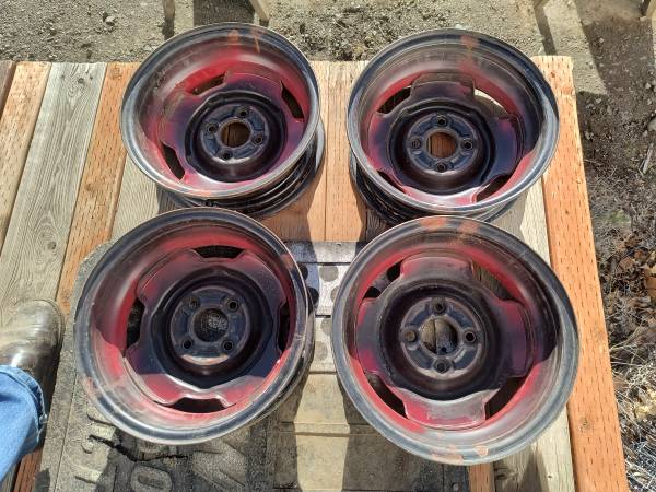 For your Craigslist consideration today here's a set of four (4) red 14" steel wheels for $100 cash FOB Pomeroy WA.